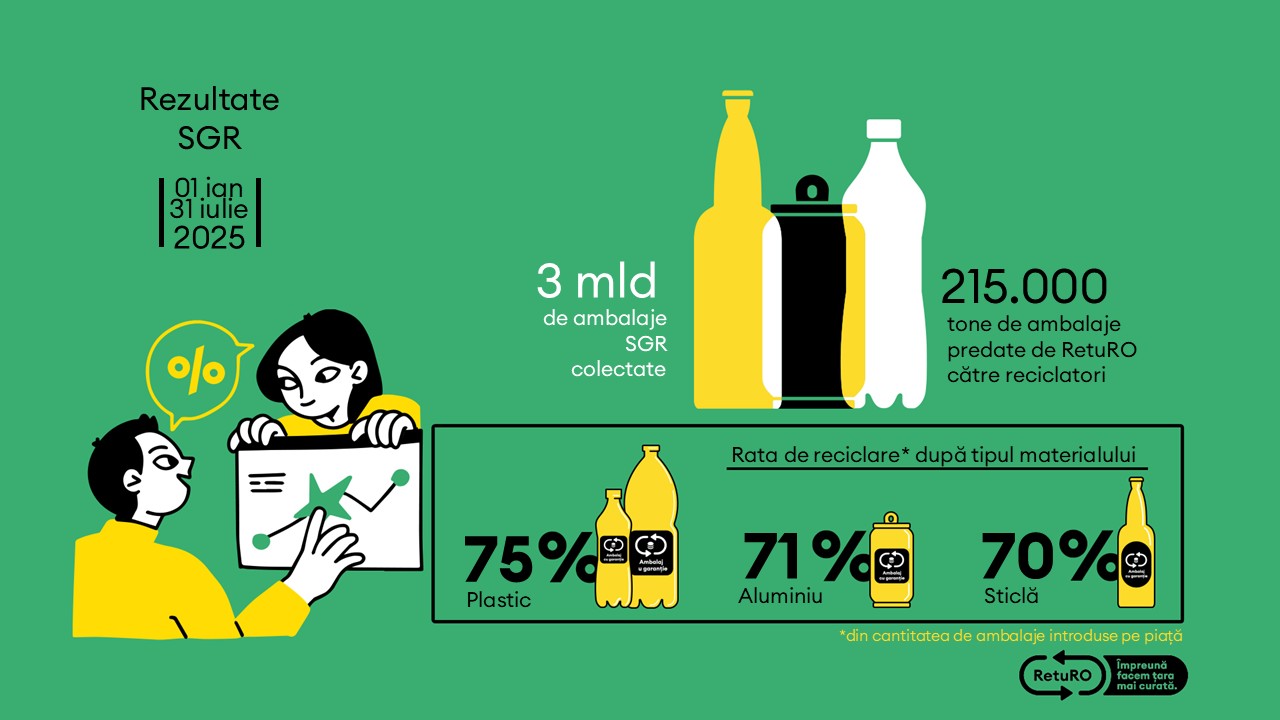 RetuRO, administratorul Sistemului de Garanție-Returnare, cel mai mare proiect de economie circulară din România, anunță evoluția și rezultatele programului pentru perioada ianuarie-iulie 2025. De la începutul anului, aproximativ 3 miliarde de ambalaje cu garanție au fost returnate de către consumatori, iar RetuRO a predat către reciclatori o cantitate de 215.000 de tone de ambalaje. În luna […]