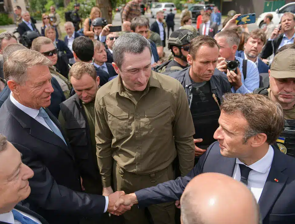 În aceeași zi, președintele Klaus Iohannis, cancelarul german Olaf Scholz, președintele francez Emmanuel Macron și premierul italian Mario Draghi au efectuat o vizită la Kiev, marcând prima lor întâlnire în Ucraina de la începutul conflictului. Cei patru lideri au fost primiți în jurul orei 13.00 de către Zelenski la palatul prezidențial din capitala ucraineană.